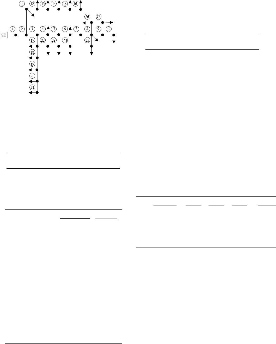 dos alimentadores de prueba compuestos de 8 y 27 nodos