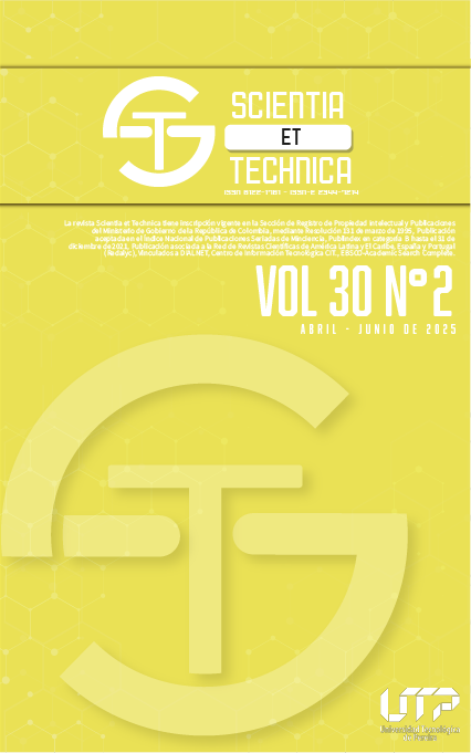 Los cedentes mediante contrato CESIÓN DE DERECHOS PATRIMONIALES declaran que todo el material que forma parte del artículo está totalmente libre de derechos de autor de terceros y, por lo tanto, se hacen responsables de cualquier litigio o reclamación relacionada o reclamación relacionada con derechos de propiedad intelectual, exonerando de toda responsabilidad a la Universidad Tecnológica de Pereira (entidad editora) y a su revista Scientia et Technica. De igual forma, los autores aceptan que el trabajo que se presenta sea distribuido en acceso abierto gratuito, resguardando los derechos de autor bajo la licencia Creative Commons Atribución/Reconocimiento-No Comercial- Compartir bajo los mismos términos 4.0 Internacional — CC BY-NC-SA 4.0.