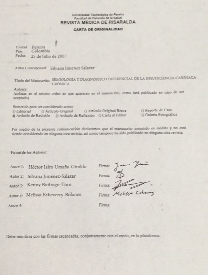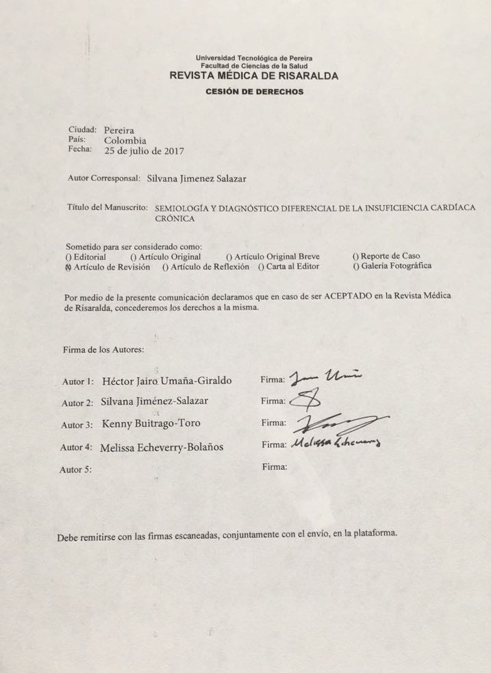por parte de los autores para obtener el permiso de reproducción de sus contribuciones. La reproducción total o parcial de los trabajos aparecidos en la Revista Médica de Risaralda, debe hacerse citando la procedencia, en caso contrario, se viola los derechos reservados.