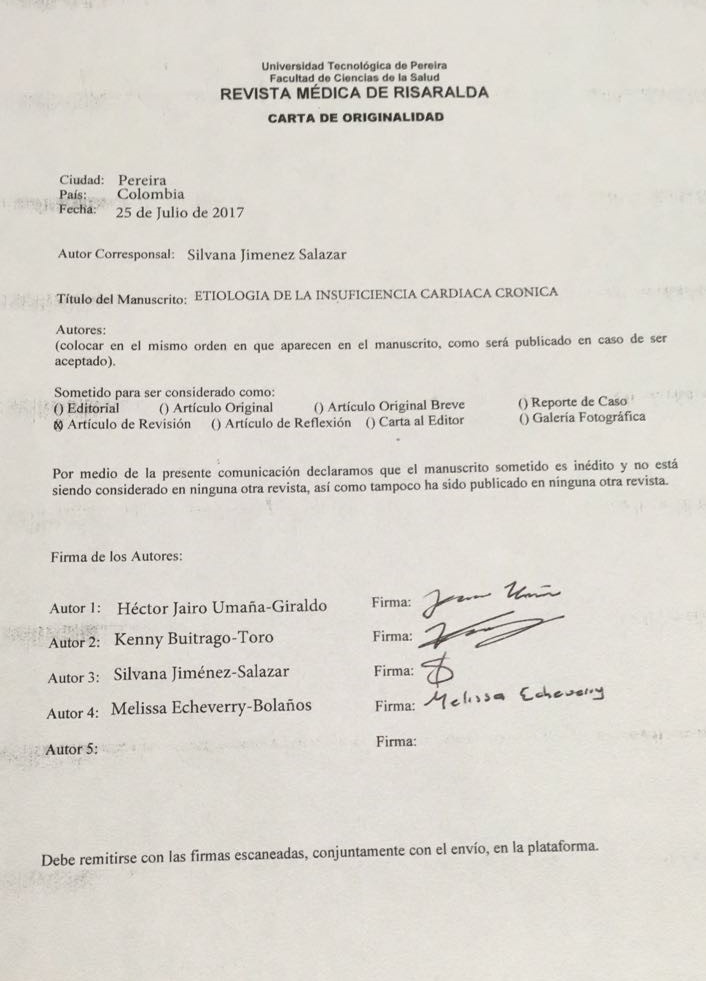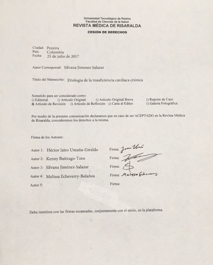 por parte de los autores para obtener el permiso de reproducción de sus contribuciones. La reproducción total o parcial de los trabajos aparecidos en la Revista Médica de Risaralda, debe hacerse citando la procedencia, en caso contrario, se viola los derechos reservados.
