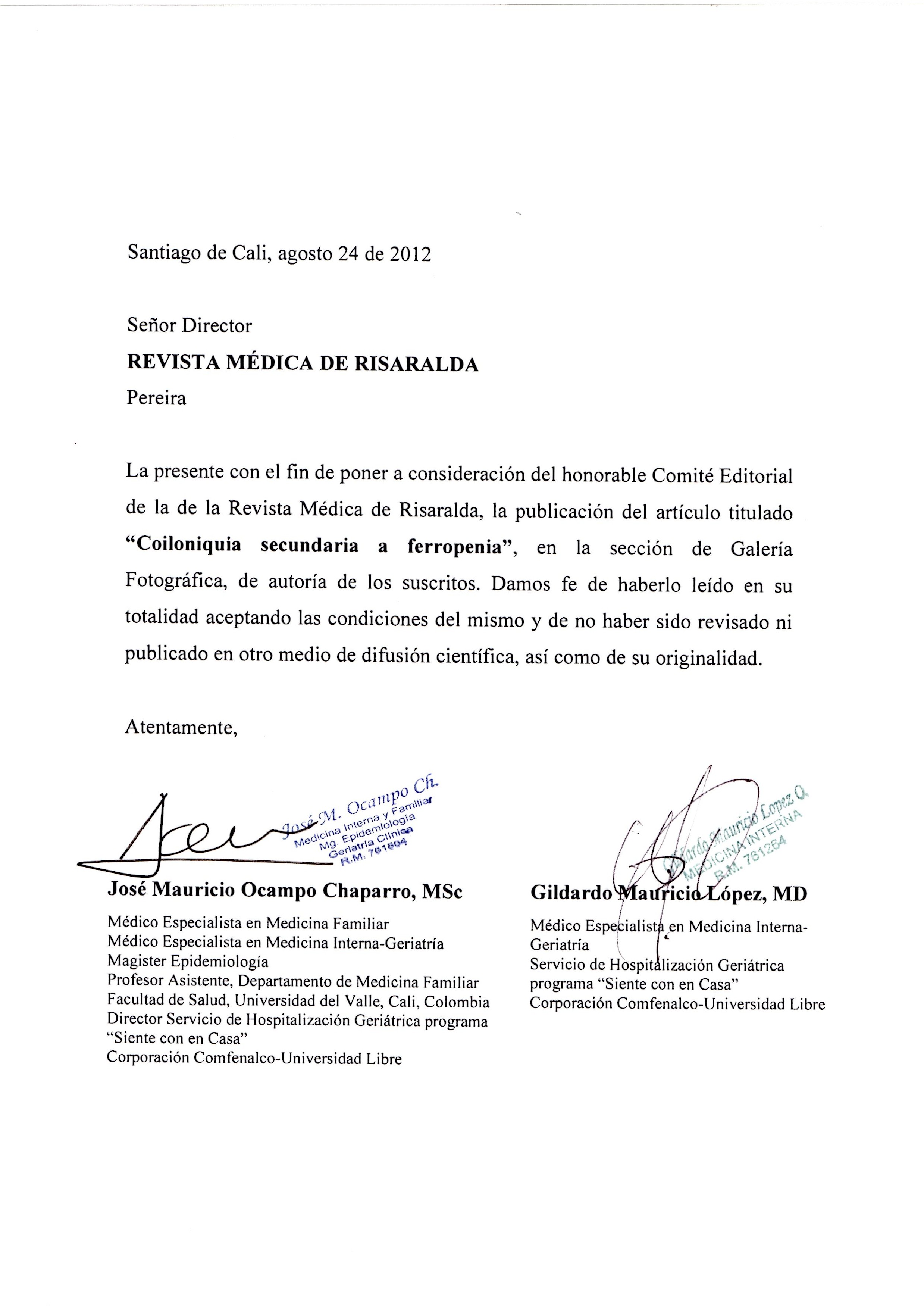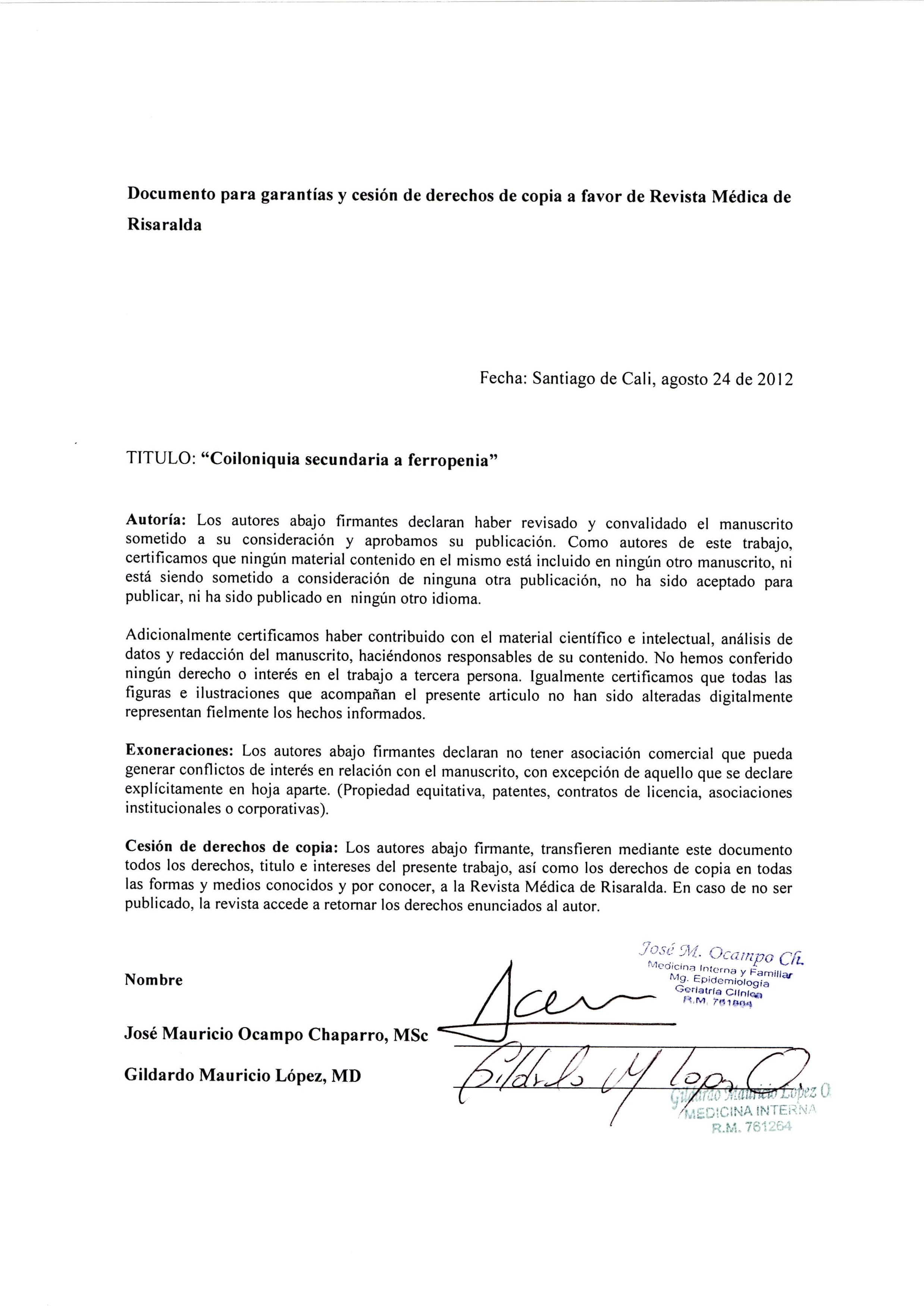 por parte de los autores para obtener el permiso de reproducción de sus contribuciones. La reproducción total o parcial de los trabajos aparecidos en la Revista Médica de Risaralda, debe hacerse citando la procedencia, en caso contrario, se viola los derechos reservados.