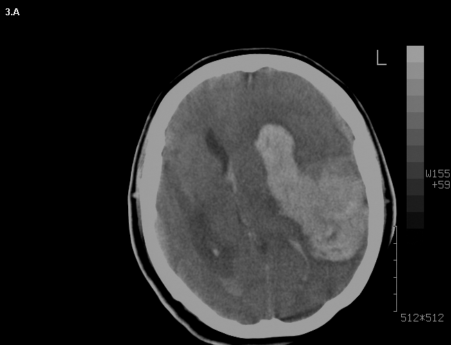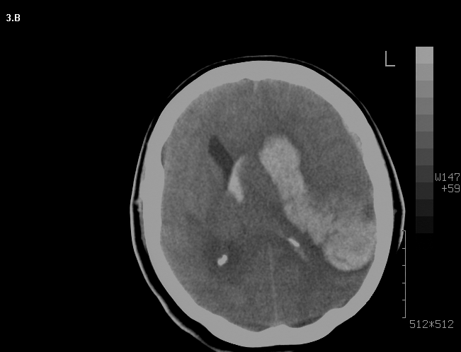 Mujer de 46 años que ingreso por cefalea súbita, hemiparesia izquierda y disartria, con tomografía axial computarizada cerebral simple que mostró hemorragia frontoparietal derecha drenada a ventrículos y arteriografía con patrón Moyamoya. Reingreso 3 meses después con deterioro del estado de consciencia y tomografía axial computarizada cerebral simple que mostró hemorragia intraparenquimatosa temporoparietal izquierda con extensión intraventricular y desviación de la línea media, se manejo en Unidad de Cuidados Intensivos con traqueostomía y gastrostomía, presentó neumonía y sepsis nosocomial, finalmente falleció en la Unidad de Cuidados Intensivos.